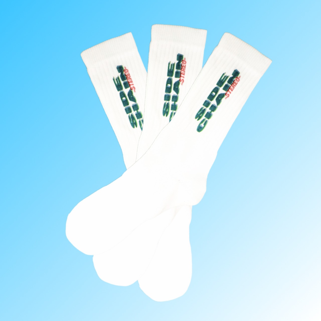 SIDECHAIN STEREOのテキストロゴがプリントされたシンプルで丈夫な作りのスポーツソックス 組成 : 綿100% サイズ : 24cm〜27cm